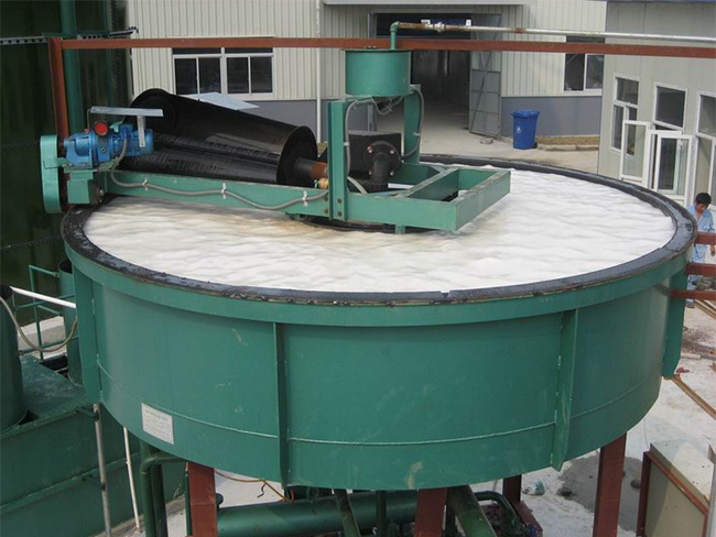 气浮机是利用小气泡或微小气泡使介质中的杂质浮出水面的设备。对水体中含有的一些比重接近于水的细微籍其自重难于下沉或上浮即可采用该气浮装置。目前在给排水方面,预处理的水质,除一些含砂较多的原水水体以及含机械杂质较重的污水外,大部分都是质轻的悬浮颗粒。对于这些原水,若沿用传统的沉淀方法,效果必然很差,尤其在冬季低温条件下,由于混凝和水力条件变劣,处理效果更难保证??梢韵胂?难以沉淀的絮粒,硬要使其下沉,势必事倍功半,倒不如因势利导,人为地向水体中导入气泡,使其粘附于絮粒上,从而大幅;度地降低絮粒的整体密度,并借气泡上升的速度,强行使其.上浮,以此实现快速的固液分离。从这个意义上来说,气浮技术的出现,是对重力沉降法的一-次革命,它开拓了固、液分离技术的新领域。